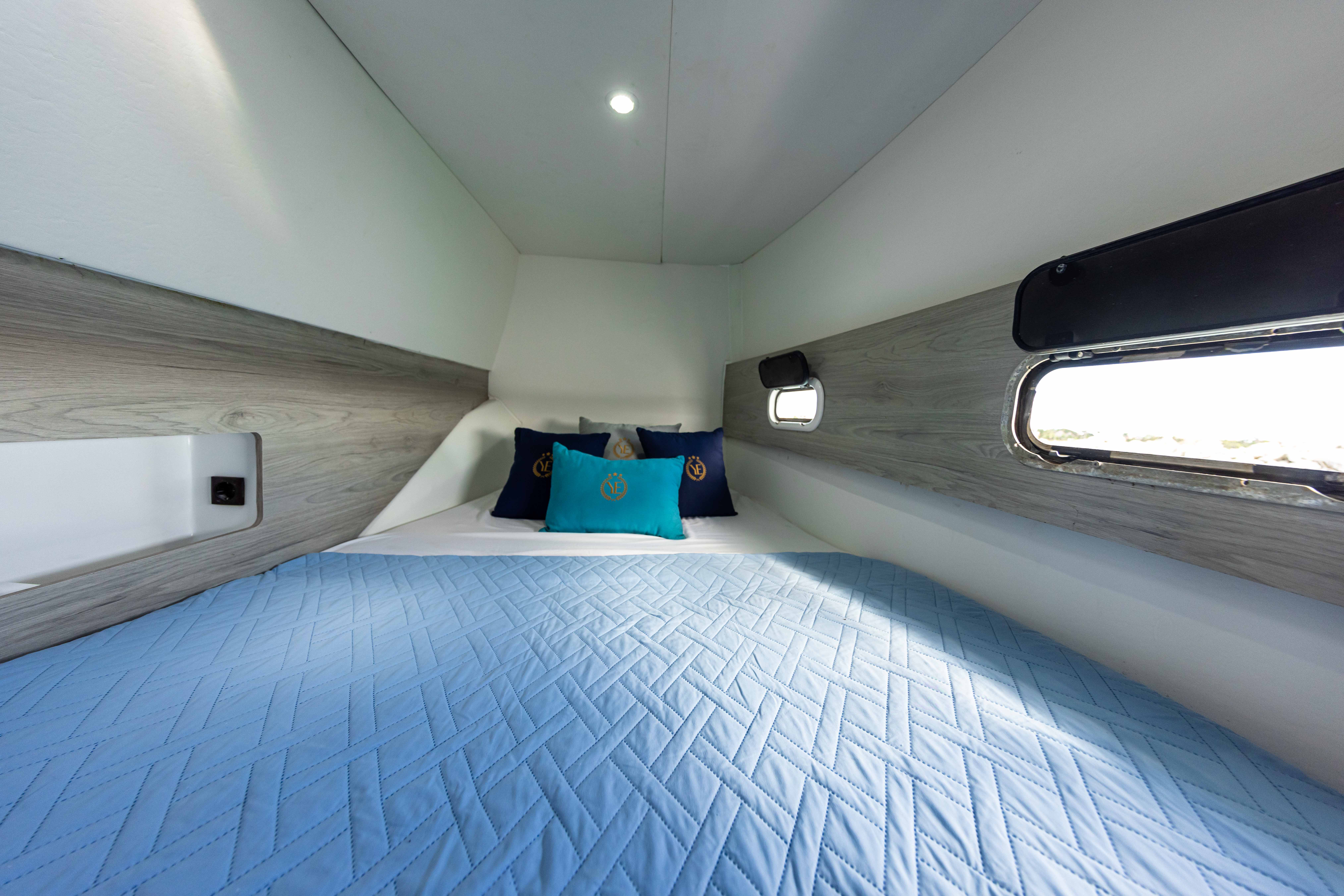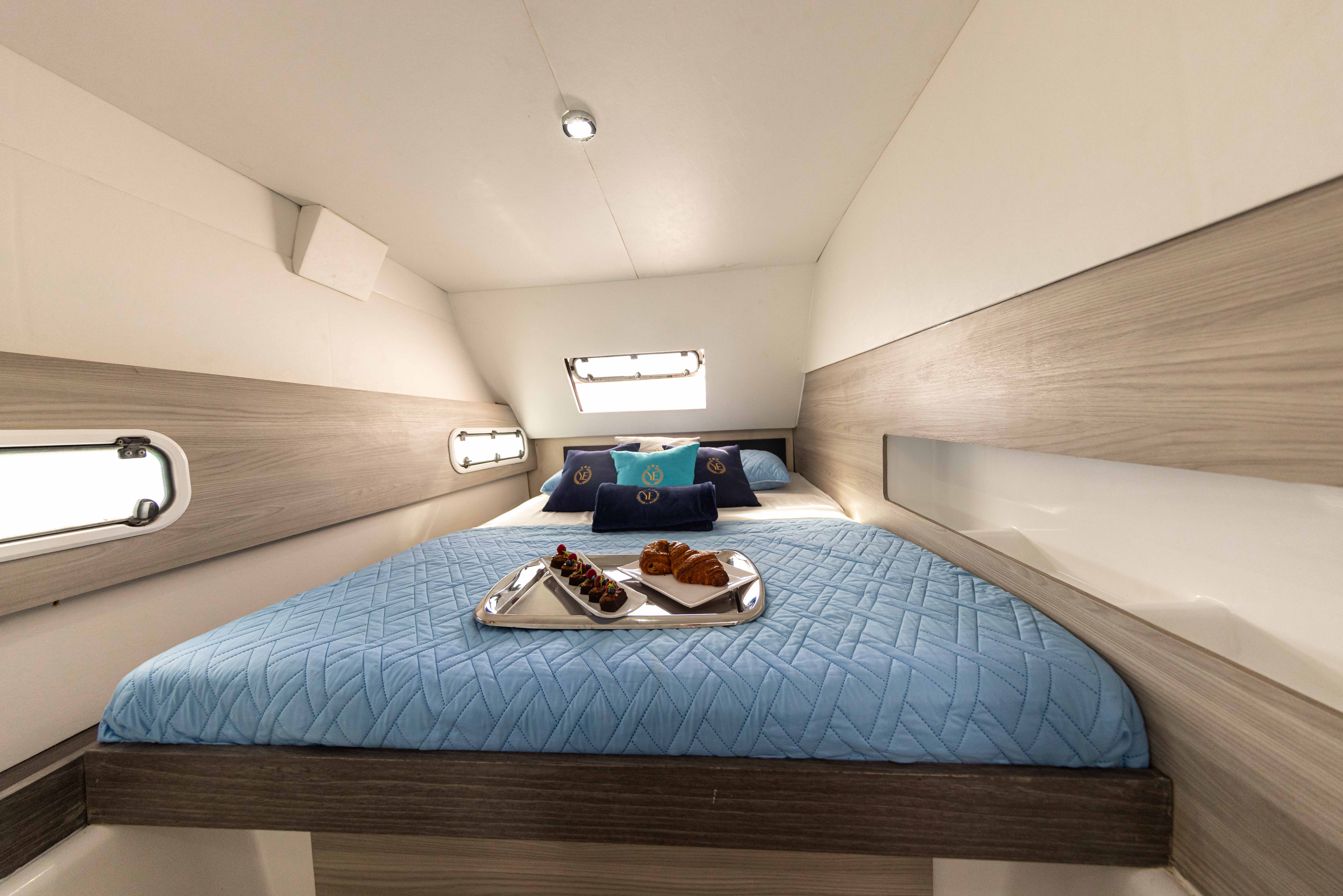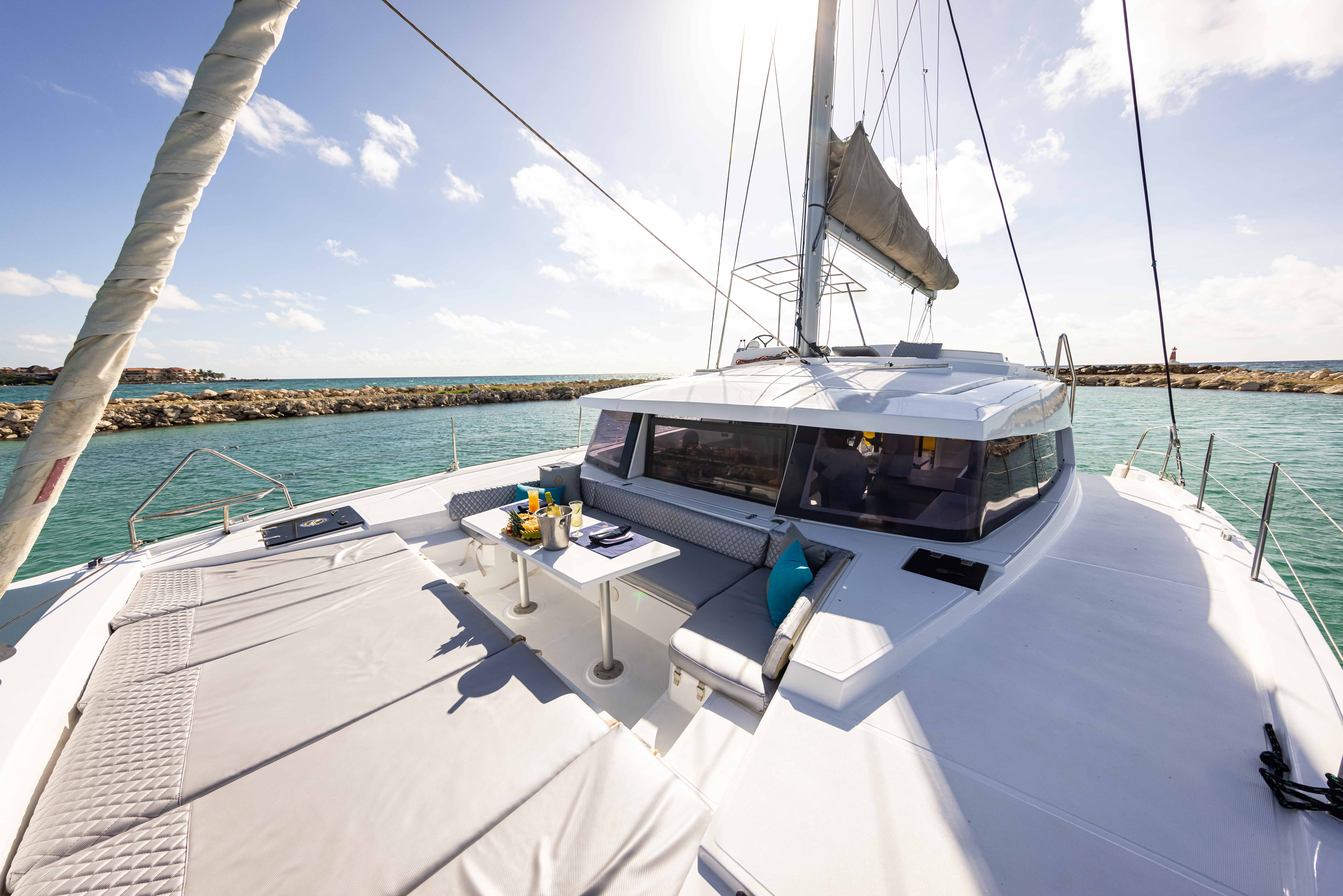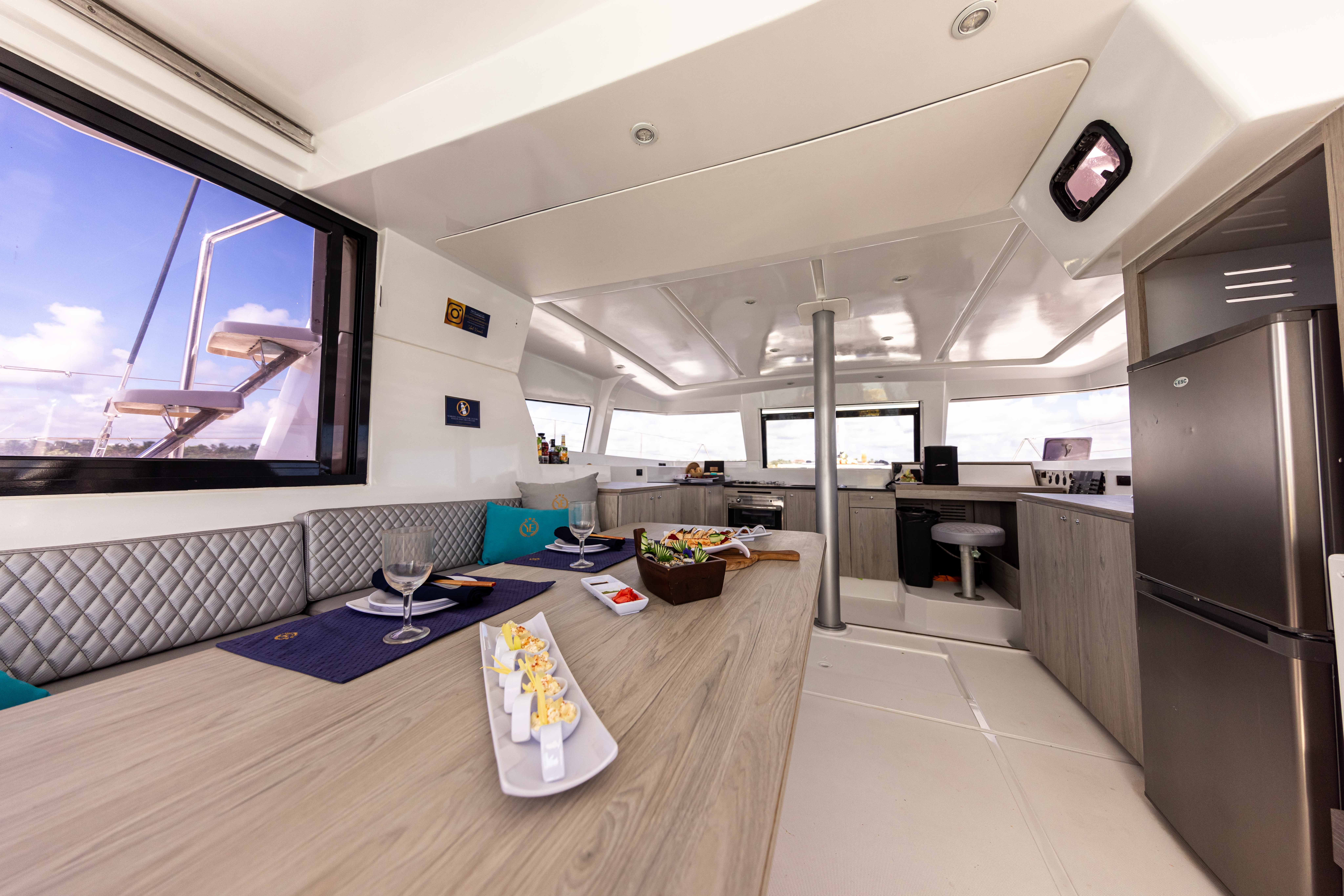 Embark on a sea adventure aboard our spacious catamaran, adorned with elegant French design, seamlessly merging speed and comfort to indulge up to twenty passengers.