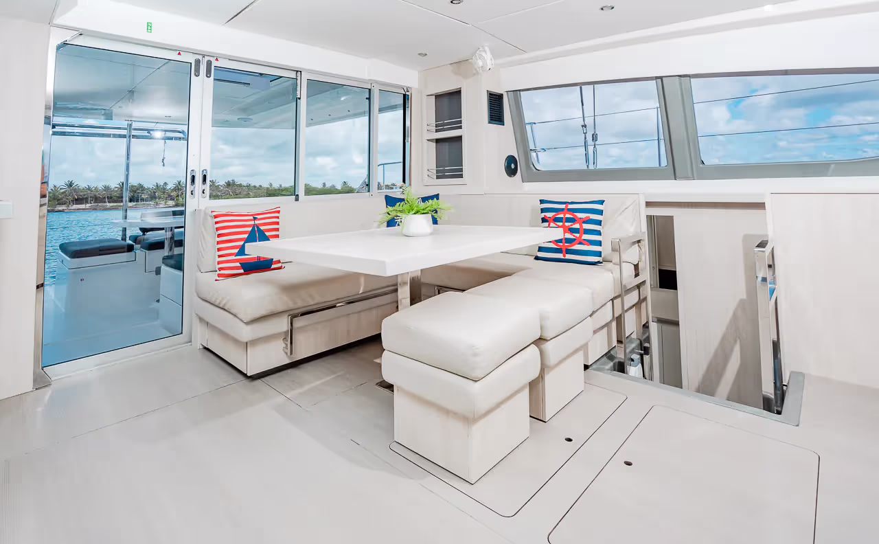 Enjoy an elegant and spacious sailing experience aboard this 47 ft Leopard catamaran. With plenty of shaded and sunny areas, a large interior lounge, and full-service amenities, this is an ideal choice for group outings, special celebrations, or unforgettable family adventures.