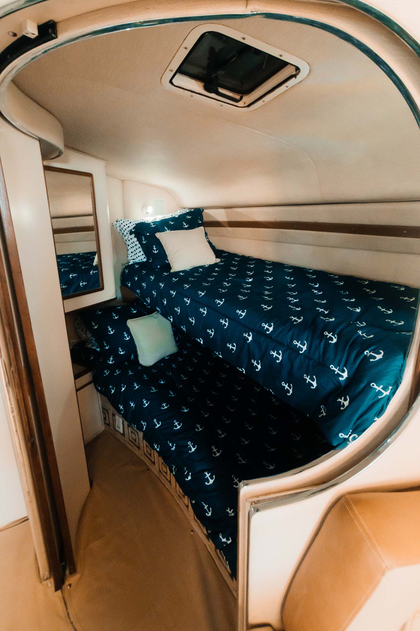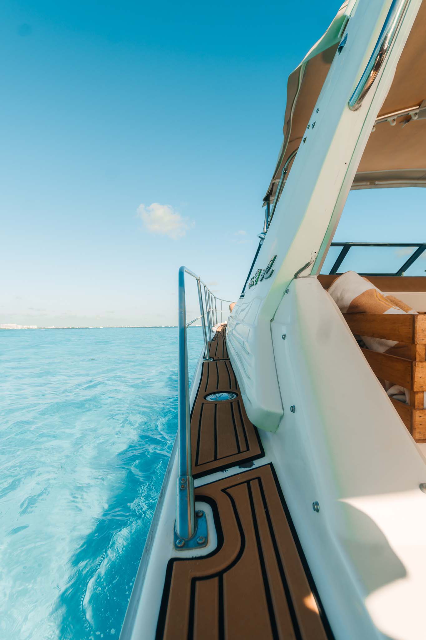 Charter the 47ft Sea Ray TRUCO IV — 2 cabins, A/C lounge, JL Bluetooth sound, bow sundeck & hydraulic platform. Book your Cancún yacht experience today!