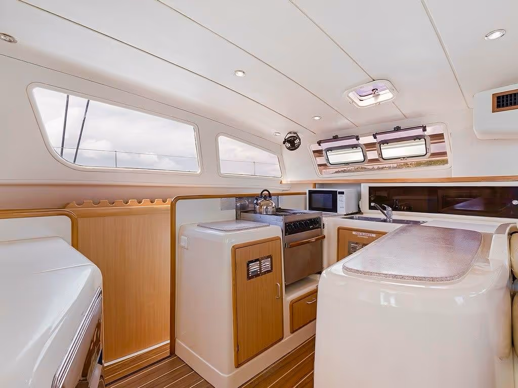 Enjoy an elegant and spacious sailing experience aboard this 47 ft Leopard catamaran.