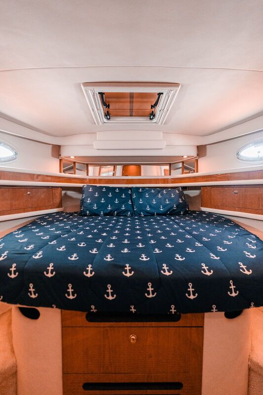 Experience this yacht includes air conditioning, two cabins, two bathrooms, living room with table, kitchen (refrigerator, microwave), sundecks, Bluetooth music